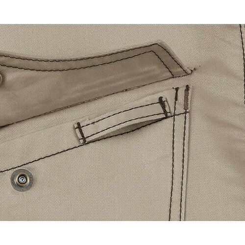 ソフトな風合いと独特の織柄が特長のミリタリー調ワークウエア。 ピスポケットや右脇ポケットがジャケットのハードなイメージを継承。 消臭・抗菌効果のあるDEO+テープやダブルポケットなど付加価値が高い商品。