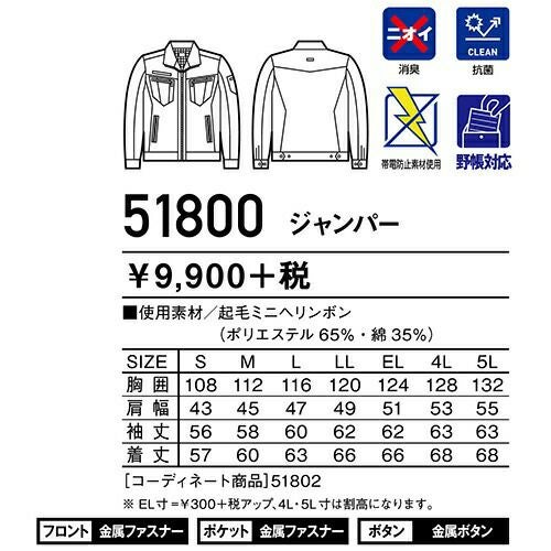 自重堂 Jawin 作業服 51800 ジャンパー 秋冬 メンズ 作業着 ワークウエア 通年 ブルゾン 上着 おしゃれ かっこいい 人気 企業 法人 ワーク 作業 工場 外作業 ワークユニフォーム 仕事 土木 工事 現場