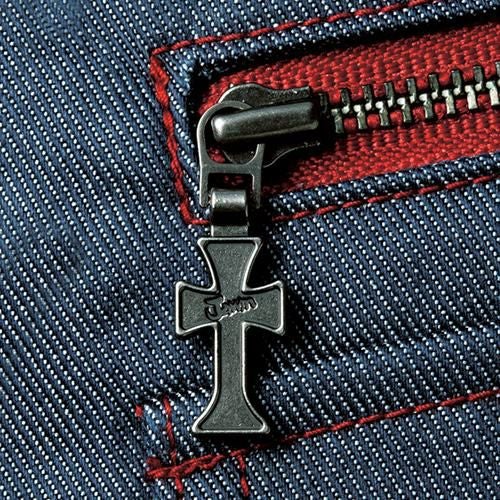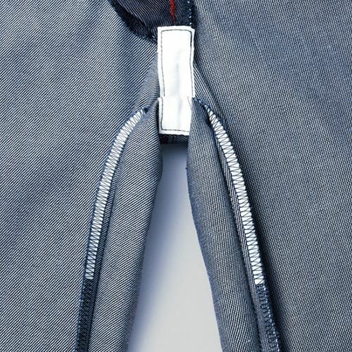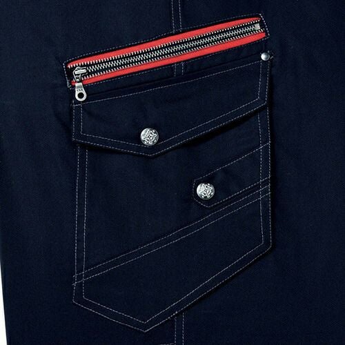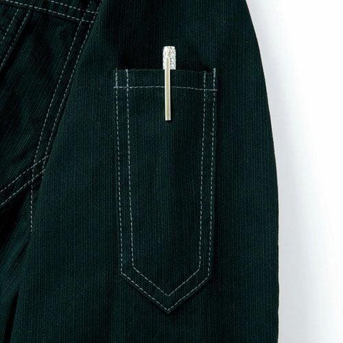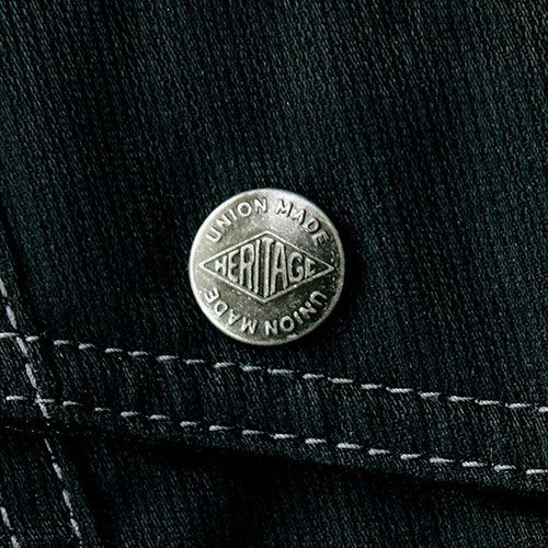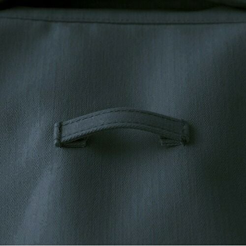 ジーニングテイストなカジュアルワークウエア。 デニム調の素材感がカジュアルな雰囲気を醸し出す。 ジーニングテイストのデザインとこだわりの附属使いが特長の新シリーズ。