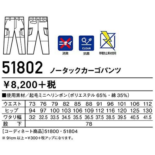 自重堂 Jawin 作業服 51802 ノータックカーゴ 秋冬 メンズ 作業着 ポケット付き ボトムス 通年 カーゴパンツ おしゃれ かっこいい 人気 ズボン 作業ズボン 作業パンツ 作業 工事 土木 塗装 DIY diy