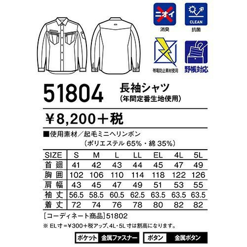 自重堂 Jawin 作業服 51804 長袖シャツ 秋冬 メンズ 作業着 長袖 ワークウエア 通年 ワークシャツ