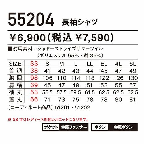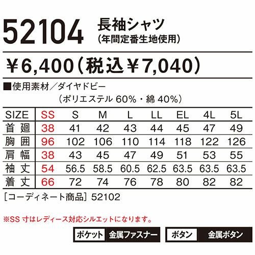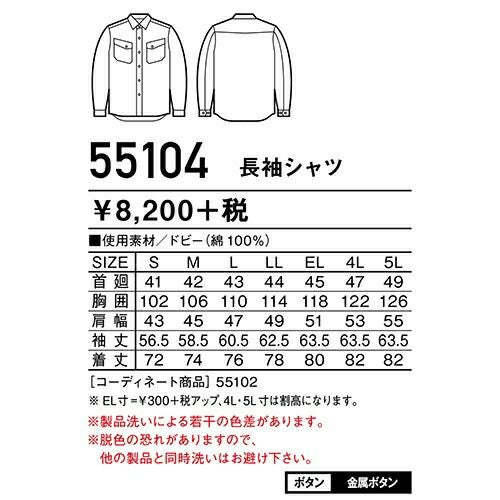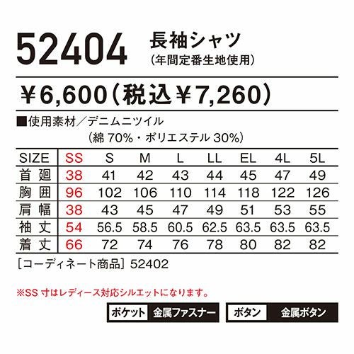 自重堂 Jawin 作業服 52404 長袖シャツ 通年 定番 メンズ 作業着 長袖 ワークウエア 秋冬 ワークシャツ
