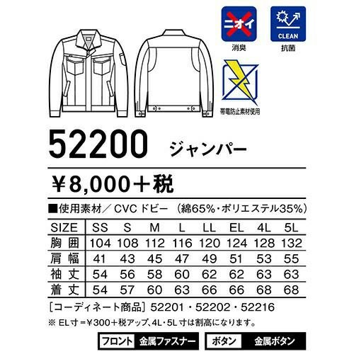 自重堂 Jawin 作業服 52200 ジャンパー 秋冬 メンズ 作業着 ワークウエア 通年 ブルゾン 上着 おしゃれ かっこいい 人気 企業 法人 ワーク 作業 工場 外作業 ワークユニフォーム 仕事 土木 工事 現場