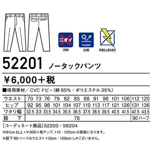 自重堂 Jawin 作業服 52201 ノータックパンツ 秋冬 メンズ 作業着 腿ポケット無 ボトムス 通年 スラックス 作業ズボン 作業パンツ ワークパンツ ズボン おしゃれ かっこいい オフィス ユニホーム 作業 軽作業 外作業 工場 現場
