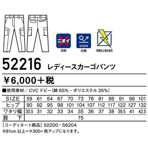 自重堂 Jawin 作業服 52216 カーゴパンツ 秋冬 レディース 作業着 ポケット付き ボトムス 通年 おしゃれ かっこいい 人気 ズボン 作業ズボン 作業パンツ 作業 工事 土木 塗装 DIY diy