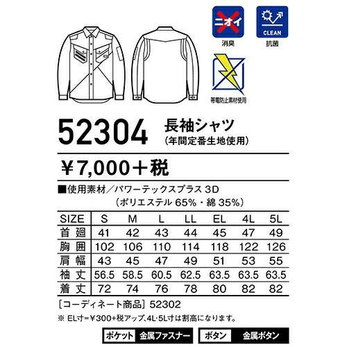 自重堂 Jawin 作業服 52304 長袖シャツ 秋冬 メンズ 作業着 長袖 ワークウエア 通年 ワークシャツ