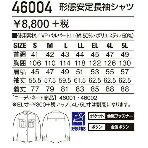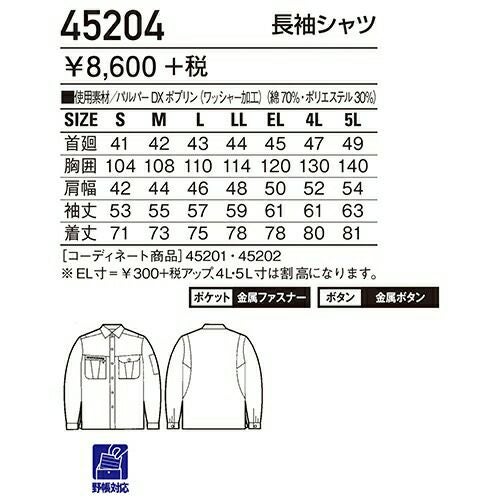 自重堂 作業服 45204 長袖シャツ 春夏 メンズ 作業着 長袖 ワークウエア ワークシャツ