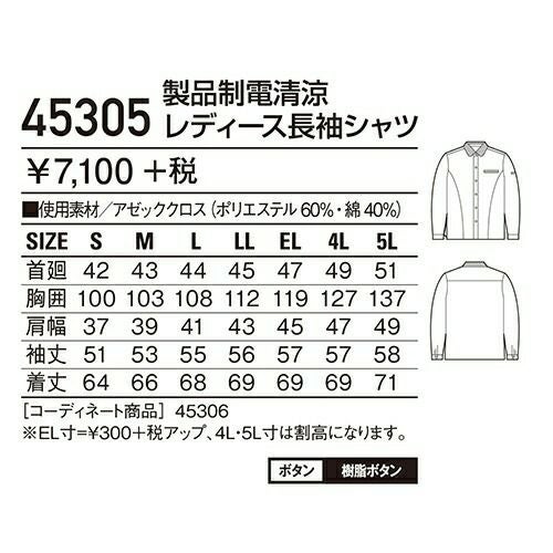 自重堂 作業服 45305 レディース長袖シャツ 春夏 レディース 作業着 長袖 ワークウエア ワークシャツ