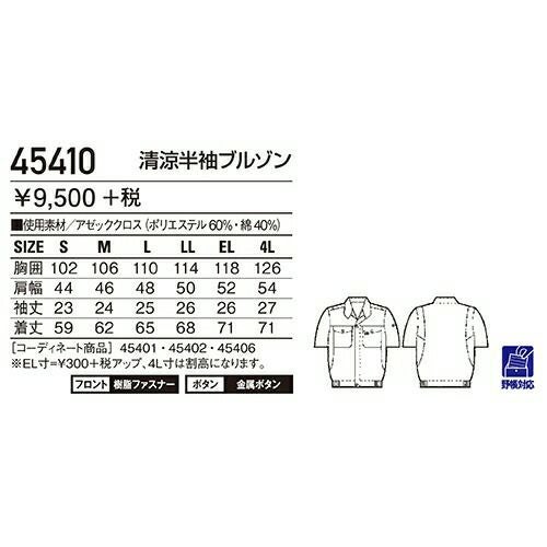自重堂 作業服 45410 半袖ブルゾン 春夏 ユニセックス メンズ・レディース対応 作業着 ブルゾン