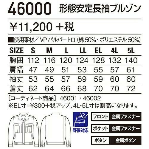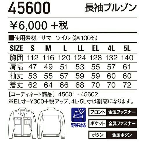 自重堂 作業服 45900 長袖ブルゾン 春夏 メンズ 作業着 ワークウエア ブルゾン