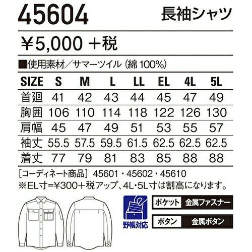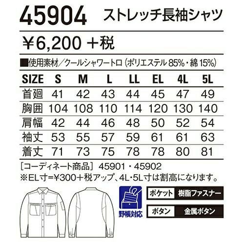自重堂 作業服 45904 長袖シャツ 春夏 メンズ 作業着 長袖 ワークウエア ワークシャツ