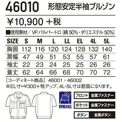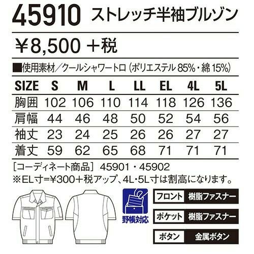 自重堂 作業服 45910 半袖ブルゾン 春夏 メンズ 作業着 ワークウエア ブルゾン