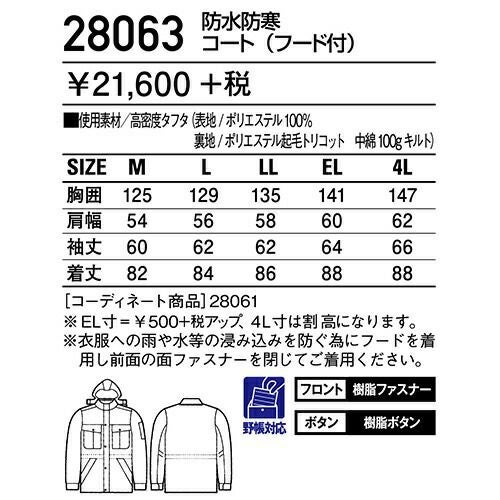 自重堂 コート(フード付) 防寒コート 防寒ジャケット 保温 人気 安い 最強 アウター ブルゾン ドカジャン 防寒ジャンパー ダウン 上着 防寒着 おしゃれ 暖かい 秋冬 かっこいい 作業着 ワーク マン メンズ 極寒 寒冷地 釣り キャンプ 登山 アウトドア 28063