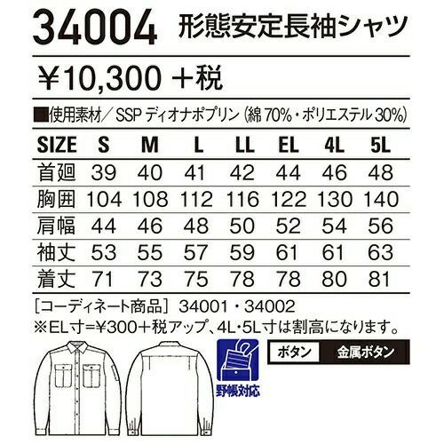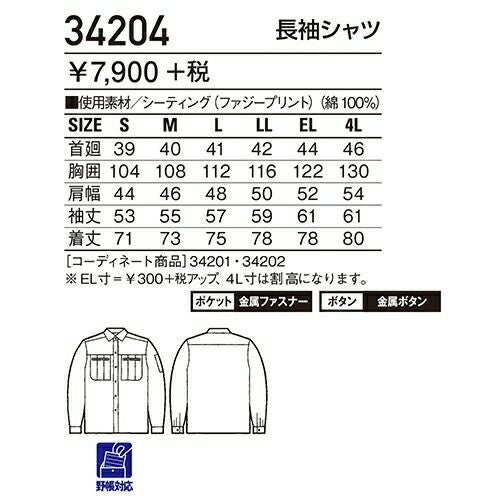 自重堂 DESK-WJ 作業服 34104 長袖シャツ 春夏 メンズ 作業着 長袖 ワークウエア ワークシャツ