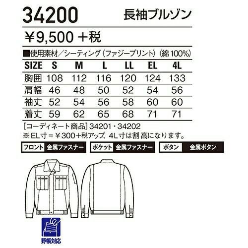 自重堂 DESK-WJ 作業服 34100 長袖ブルゾン 春夏 メンズ 作業着 ワークウエア ブルゾン