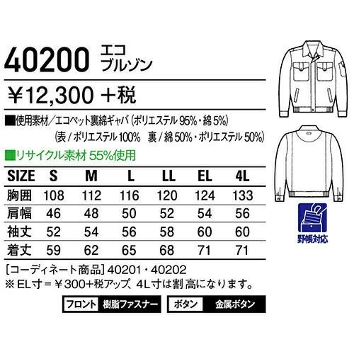 自重堂 作業服 40200 ブルゾン 秋冬 メンズ 作業着 ワークウエア 通年 上着 おしゃれ かっこいい 人気 企業 法人 ワーク 作業 工場 外作業 ワークユニフォーム 仕事 土木 工事 現場