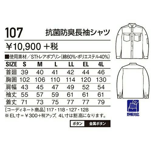 自重堂 DESK-WJ 作業服 107 長袖シャツ 春夏 メンズ 作業着 長袖 ワークウエア ワークシャツ