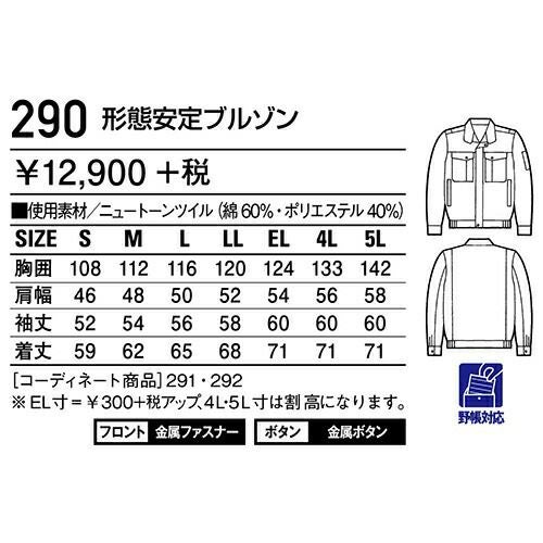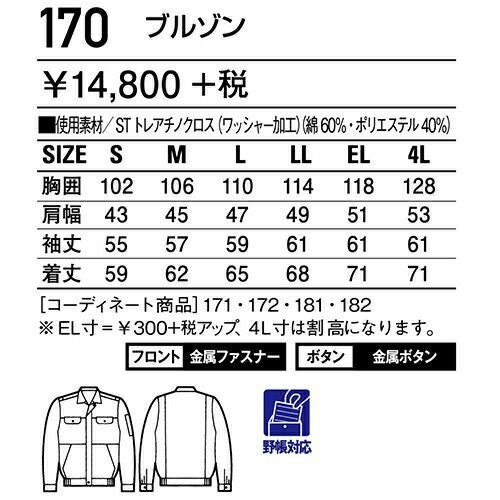 自重堂 DESK-WJ 作業服 109 長袖ブルゾン 春夏 メンズ 作業着 ワークウエア ブルゾン