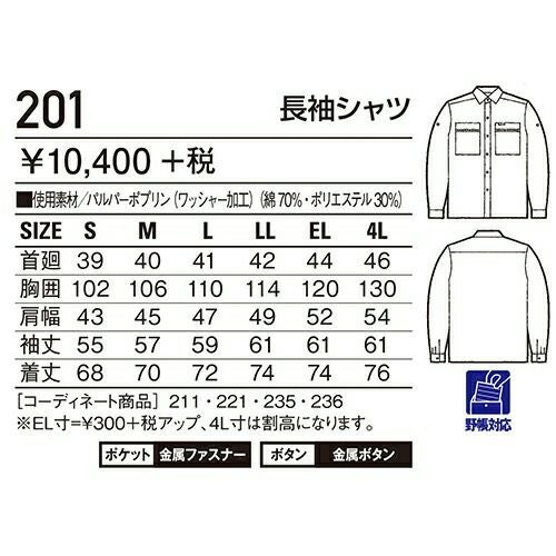 自重堂 DESK-WJ 作業服 201 長袖シャツ 春夏 メンズ 作業着 長袖 ワークウエア ワークシャツ