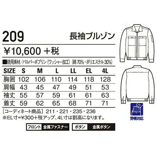 自重堂 DESK-WJ 作業服 209 長袖ブルゾン 春夏 メンズ 作業着 ワークウエア ブルゾン