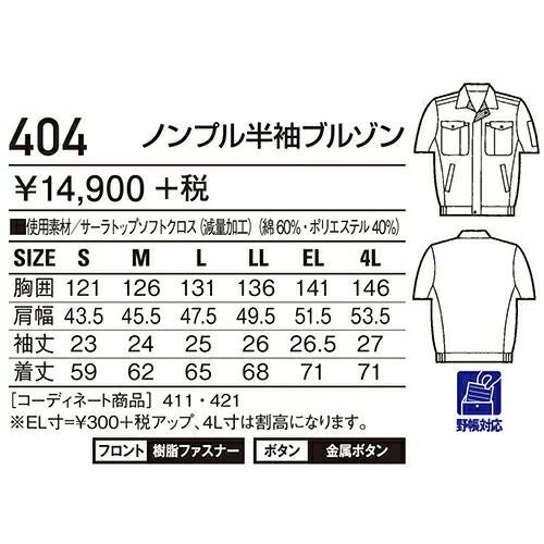 自重堂 DESK-WJ 作業服 404 半袖ブルゾン 春夏 メンズ 作業着 ワークウエア ブルゾン