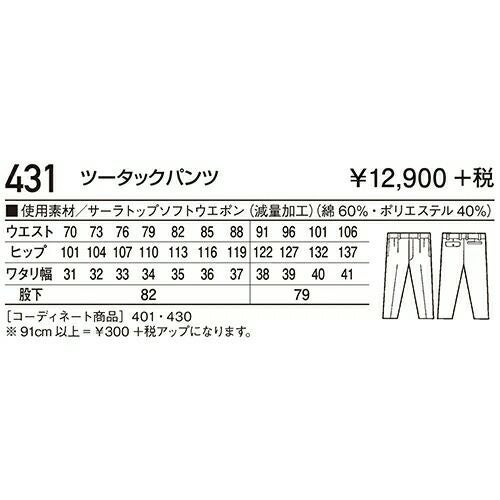 自重堂 DESK-WJ 作業服 431 ツータックパンツ 秋冬 メンズ 作業着 腿ポケット無 ボトムス 通年 スラックス 作業ズボン 作業パンツ ワークパンツ ズボン おしゃれ かっこいい オフィス ユニホーム 作業 軽作業 外作業 工場 現場
