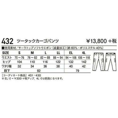 自重堂 DESK-WJ 作業服 432 ツータックカーゴ 秋冬 メンズ 作業着 ポケット付き ボトムス 通年 カーゴパンツ おしゃれ かっこいい 人気 ズボン 作業ズボン 作業パンツ 作業 工事 土木 塗装 DIY diy