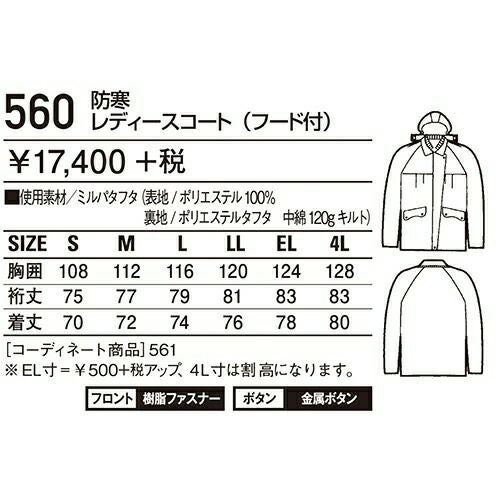 自重堂 レディースコート 防寒コート 防寒ジャケット 保温 人気 安い 最強 アウター ブルゾン ドカジャン 防寒ジャンパー ダウン 上着 防寒着 おしゃれ 暖かい 秋冬 かっこいい 作業着 ワーク マン メンズ 極寒 寒冷地 釣り キャンプ 登山 アウトドア 560