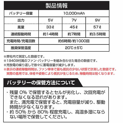 他の画像を見る EFウェア用ファンバッテリーセット 桑和 SOWA EFウェア用 2025年モデル ファン バッテリーセット 16108 16108 熱中症対策 作業着 作業服 春夏EFウェア用ファンバッテリーセット 特別価格 ¥ 15,720 税込 ハイパワーバッテリーとハイパワー3枚羽で究極の風量をご提供 業界トップクラス容量の20,000mAhを搭載したバッテリーは15V80Lの高風量で約10時間の連続運転が可能!業界トップクラスの軽さと薄さを誇るファンは高風量かつ低燃費。ロングドライブとハイパワーで毎日を快適に。 カートに入れる お気に入りに登録する