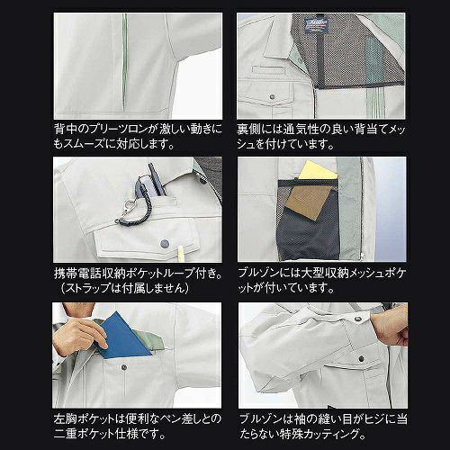 上質ハイブリッドコットンのソフトな風合いに、シンプルデザインとミリタリーテイストのカラーが醸し出す精悍な男っぽさで人気の定番シリーズ。二重ポケット仕様の胸のフラップポケットをはじめ、機能性と収納性に優れた多彩なポケットが作業現場をサポート。