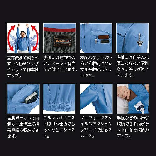 軽くて丈夫なT/Cツイル素材に、たっぷり収納のマチ付き胸ポケット。左胸ポケットは内側が二重構造、外側にマルチ収納ポケットも配して機能性が大きく向上。動きやすいNEWバンザイカットも採用し、デザイン性・着やすさのすべてをパワーアップし、コストパフォーマンスまで実現させ、タフでハードな現場に対応した新定番シリーズ。