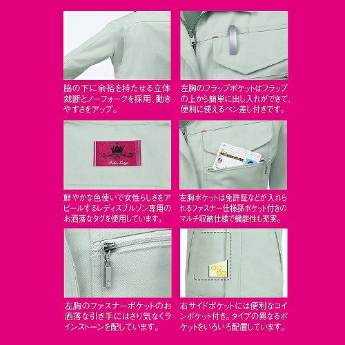 丈夫でしなやかなT/Cツイル素材に、撥水加工とともに立体裁断で肩・腕のスムーズな動きを実現。高品質&低価格でハードな現場にも人気の高いシリーズ。新機能ポケット付きですっきりシルエットの女性用ノータックスラックス・女子ブルゾン等、女子アイテムも豊富!!
