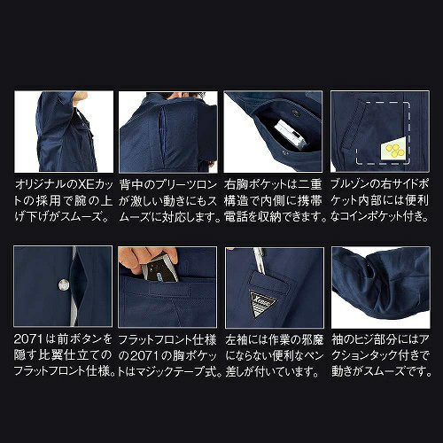 6. ジーベック XEBEC 2071 イケメン 比翼型長袖ブルゾン 綿100% 通年 秋冬用 メンズ 男性用 作業服 作業着 上着 紺 ネイビー ジャケット 定番 おしゃれ かっこいい 人気 ワーク企業 法人 作業 工場 外作業