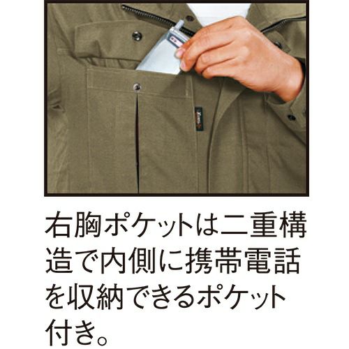 ソフトな風合いと伸縮性のある綿100%のウエザークロスに形状安定加工と防縮防シワ加工を加えて、繰り返し洗ってもアイロン不要で着ることができます。スムーズアップ機能で動きやすさも大きくアップして、土木・建築や運送などタフな現場で活躍します。