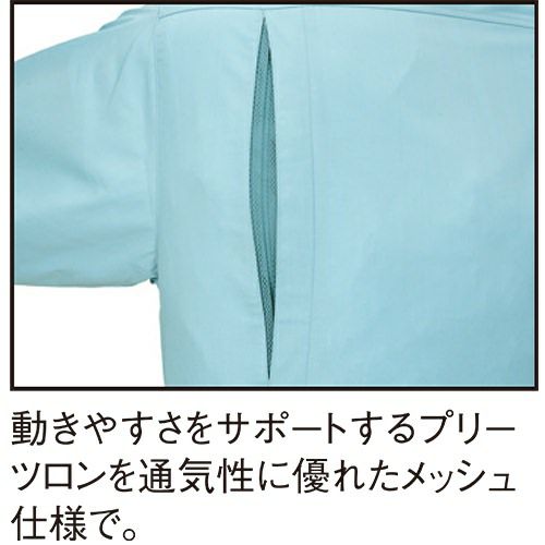 アイロン不要で着られるシワになりにくい形態安定素材を使用。着心地のいい綿混素材に、帯電防止加工を施して職場のイメージまでアップさせてくれる清潔感あふれる爽やかライトカラーです。