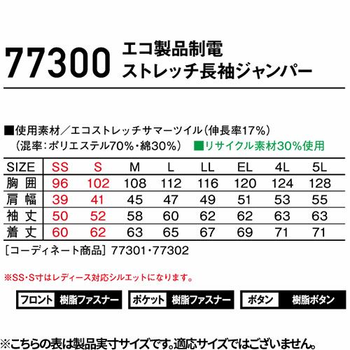 他の画像を見る 作業着 作業服 ブルゾン 春夏 Z-DRAGON エコ製品制電ストレッチ長袖ジャンパー 77200 作業着 春夏 SDGs エコロジカル リサイクル素材 再生糸 男女兼用 シャープなスタイル スタイリッシュ カジュアル 特別価格 ¥ 4,189 税込 〜 特別価格 ¥ 税込 SDGsに対応したエコロジカルなプロダクト製品制電、優れたストレッチ性で快適度抜群現代の企業ユニフォームスタイルにフィットするグローバルスタンダードモデル ●再生糸を用いたエコロジカルなSDGs対応モデル●快適な着用感を追求した伸長率22%のストレッチサマーツイルを使用●優れた帯電防止性を備えるJIS T81118適合商品●細身なシルエットがシャープなスタイルを●男女ユニセックスの着用対応 詳細を見る お気に入りに登録する