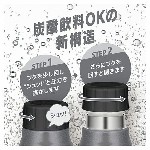 他の画像を見る 水筒 ボトル 保冷 THERMOS サーモス ステンレス製携帯用まほうびん 炭酸対応 500ml FJK500 アウトドアキャンプ用品 特別価格 ¥ 3,280 税込 スポーツやオフィスなど様々なシーンで使える炭酸飲料対応ボトル! 炭酸飲料OK!フタを少し回すと中の圧力が逃げる新構造のフタを採用。真空断熱構造なので、炭酸飲料を冷たいまま持ち運び、最後までおいしく飲むことができます。 詳細を見る お気に入りに登録する