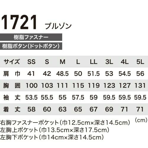 他の画像を見る 作業服 ブルゾン ジーベック ブルゾン 1740 作業着 通年 秋冬作業着 作業服 ブルゾン 上着 おしゃれ かっこいい 人気 企業 法人 作業 工場 外作業 ワークユニフォーム 仕事 土木 工事 現場 特別価格 ¥ 4,640 税込 ストレッチ、JIS制電、男女ペア ・引っ掻きや破れに強いリップストップ素材・ストレッチで動きやすい・JIS T 8118帯電防止作業服適合商品・男女ペアシリーズ・ブルゾンはSS~5Lの豊富なサイズ展開 詳細を見る お気に入りに登録する