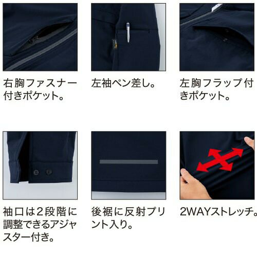 他の画像を見る 作業着 ブルゾン 桑和 SOWA 長袖ブルゾン 8012-00 通年 秋冬 作業服 ストレッチ ジャンパー 上着 制電 イージーケア お手入れ簡単 ノーアイロン アイロン不要 おしゃれ かっこいい 人気 企業 法人 作業 工場 外作業 ユニフォーム 仕事 土木 工事 現場 黒 大きいサイズ 4L 6L 特別価格 ¥ 5,290 税込 〜 特別価格 ¥ 税込 従来のワークウェアと一味違うデザイン性とストレッチ性を兼ね備えたスポーツテイストの軽量ブルゾン ・信頼の日本製軽量ストレッチダブルクロスを使用・東レライトフィックスによる軽くて伸びる快適な着心地・マスク加工(シワ加工)を施したカジュアルライクな表面感・動きやすさを追求した高いストレッチ性・制電性素材で静電気の発生を抑える・不快なニオイを軽減するデオドラントテープ付き・反射プリント・反射パイピング使いによる高視認性 詳細を見る お気に入りに登録する