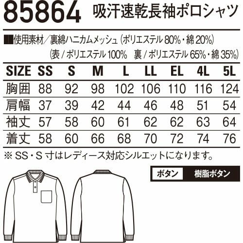 他の画像を見る 作業服 ポロシャツ 長袖 自重堂 JICHODO 吸汗速乾長袖ポロシャツ 85884 作業着 春夏 特別価格 ¥ 1,694 税込 〜 特別価格 ¥ 税込 吸汗速乾性の高いハニカムメッシュを使用したスリムフィットポロシャツ 詳細を見る お気に入りに登録する