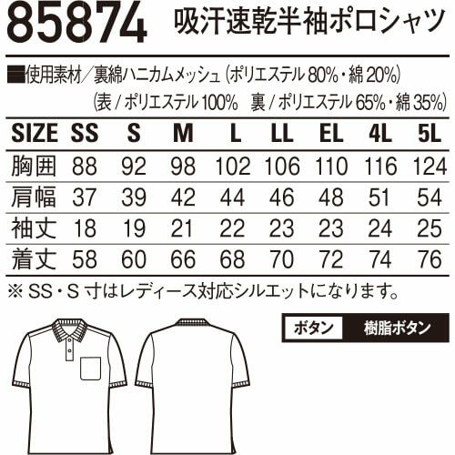 他の画像を見る 作業服 ポロシャツ 半袖 自重堂 JICHODO 吸汗速乾半袖ポロシャツ 85894 作業着 春夏 特別価格 ¥ 1,650 税込 〜 特別価格 ¥ 税込 吸汗速乾性の高いハニカムメッシュを使用したスリムフィットポロシャツ 詳細を見る お気に入りに登録する