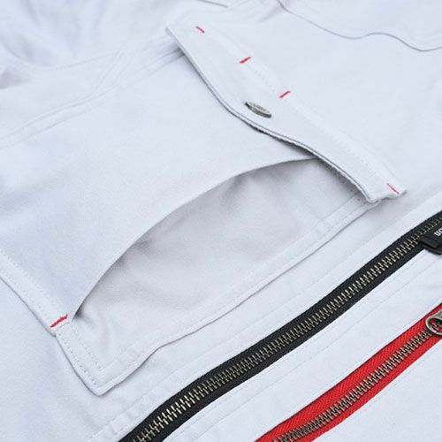 ・左胸ポケットはハーネス対応の縦ファスナーポケット