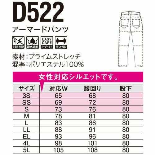 他の画像を見る 作業服 カーゴパンツ dimo ディモ アーマードパンツ D532 作業着 通年 秋冬 カッコいい おしゃれ アウトドア タウンユース 特別価格 ¥ 6,074 税込 〜 特別価格 ¥ 税込 まるで鎧(アーマー)を纏った時にスイッチが入るようなイメージで開発した着用すると仕事のモチベーションが上がるアーマードパンツデザイン性を意識したカーゴポケット付きノータック仕様です。 ストレッチ素材の特徴を活かして細身のスレンダーなシルエットにすることで履き心地の良さと動きやすさを引きだしています。左右のカーゴポケットは縦型のファスナー式タイプで見た目もスッキリしたスタイルで使いやすいデザインにしていますので作業性も抜群。デザインとシルエットにこだわり、ワークウェアとしての着用は勿論のこと、タウンユースでもコーディネート可能なすぐれものです。また、SDGsにも配慮した植物性由来PET繊維を使用したエコマーク認定商品、帯電防止のJIS T8118 適合商品です。 詳細を見る お気に入りに登録する