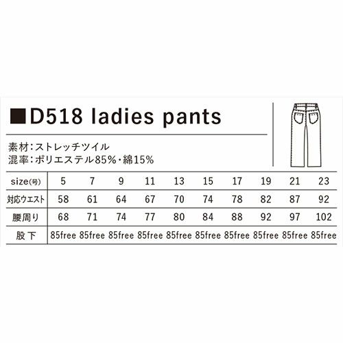 他の画像を見る 作業服 レディース パンツ dimo ディモ レディースパンツ D518 作業着 通年 秋冬 ストレッチ イージーケア 帯電防止 吸水速乾 春夏対応商品もあります メンズもあります 特別価格 ¥ 4,906 税込 〜 特別価格 ¥ 税込 太もも部分やウエスト部分がゆったりとしていて、裾にかけて細くなっているシルエットです。細身でありながらも太ももまわりにはゆとりがあり、パターン設計上、動きに対して生地が引っ張らず履きやすいため、自分にあったサイズを選べば着用感抜群のストレスフリーなパンツです。 詳細を見る お気に入りに登録する