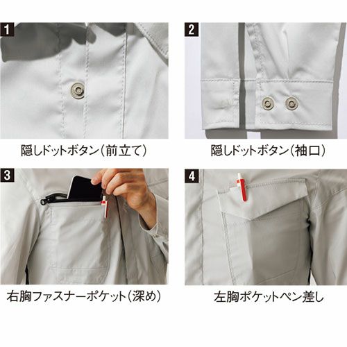 他の画像を見る 作業服 長袖シャツ dimo ディモ ロングスリーブシャツ D5540 作業着 通年 おしゃれ カッコいい シンプル 機能的 タウンユース カジュアル アウトドア イージーケア 制電 男女兼用 サイズ豊富 制服 特別価格 ¥ 6,024 税込 〜 特別価格 ¥ 税込 「dimo」らしいシンプルなデザインをベースに細かなディテールにこだわり見た目と機能性を併せ持ったユーティリティアイテム シンプルなデザインにファスナー等の突起物を隠し、商品等を傷つけない配慮や腕まわりの3D パターン設計でストレスを軽減。脇メッシュで清涼感も確保。上品な光沢とシルキーな風合いの着心地で、ストレッチ性があり動きやすいシャツです。 詳細を見る お気に入りに登録する