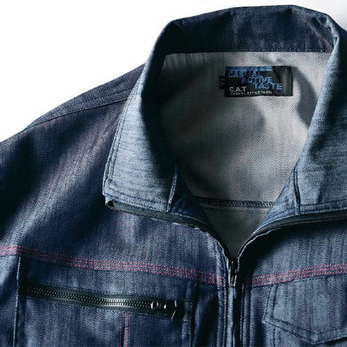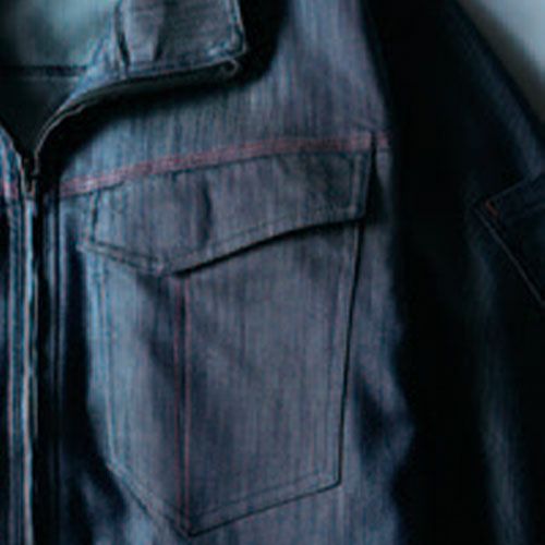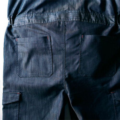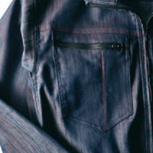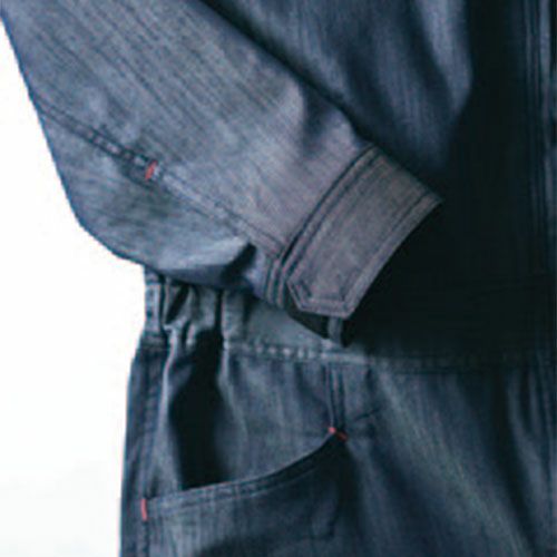 ビジュアルにこだわったカッコよく着こなせるデニムライク素材 街着感覚で着られる軽くて動きやすいデニムライクなストレッチツナギ。暑すぎない生地でオールシーズン着用可能。体や衣服に帯電する静電気を抑制する綿混素材を使用。