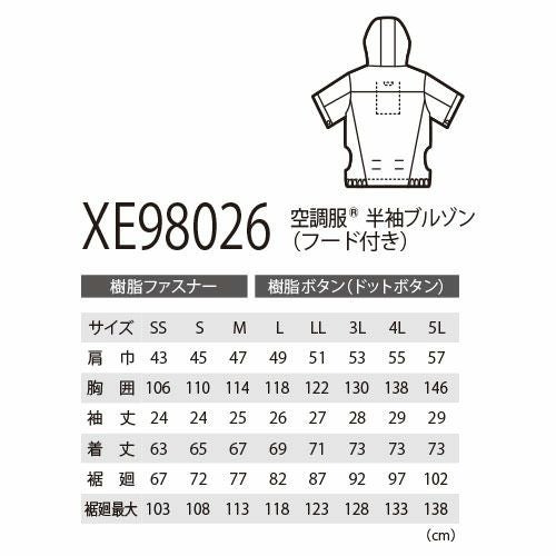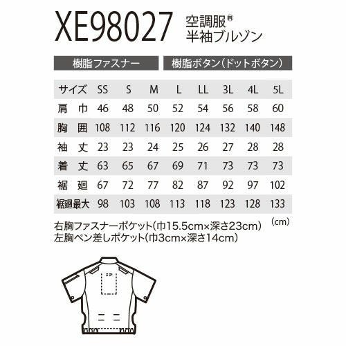 空調服 半袖 ジーベック XEBEC 空調服 半袖ブルゾン 2022年モデル XE98026 作業着 作業服 春夏 サイドファン 涼しい 快適 猛暑対策 熱中症対策 扇風機