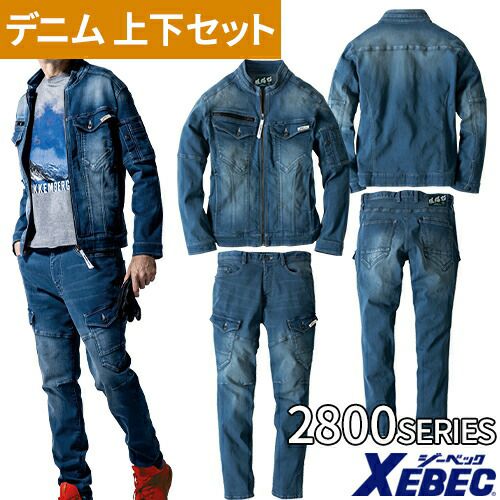 作業服 上下セット 秋冬 ストレッチ デニム 作業着 パンツ ジャケット デニム生地 メンズ レディース AW 長袖 セットアップ ジーベック 2800 ブルゾン カーゴパンツ 2803 ズボン 大きいサイズ 冬 新作 人気 おしゃれ かっこいい