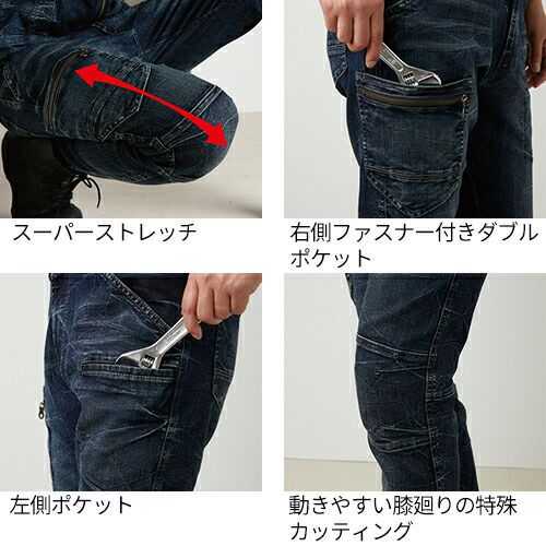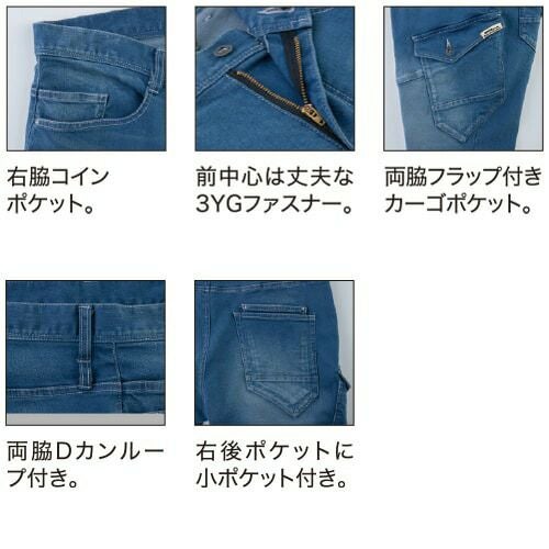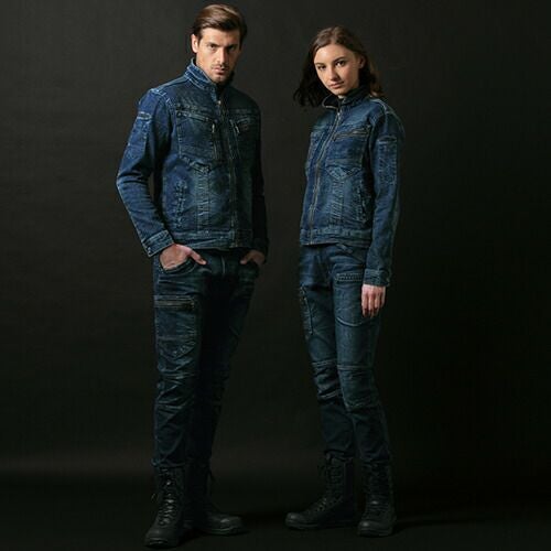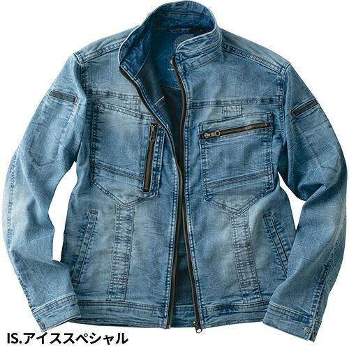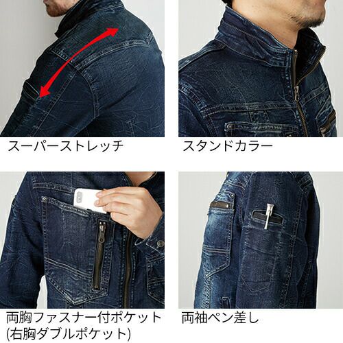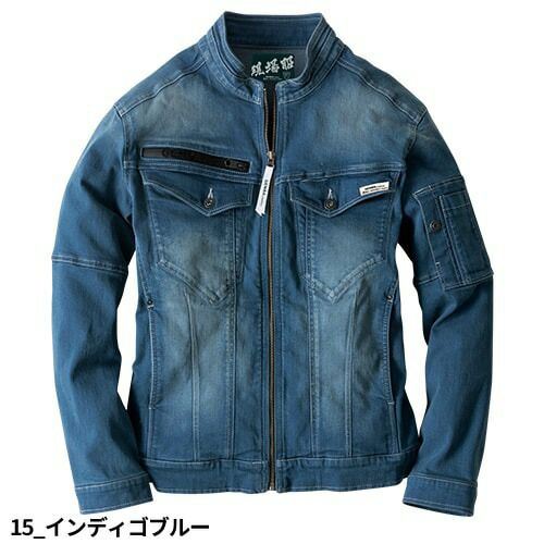 現場服シリーズにストレッチデニムシリーズが登場!ブラスト加工、バイオ加工、トッピングを施した深い味わい!! 白系ステッチや右胸のマットファスナーがアクセントになったオシャレなデニム現場服です。少しシャープなシルエットでもストレッチが効いているのでラクに作業が出来ます。