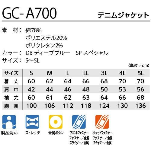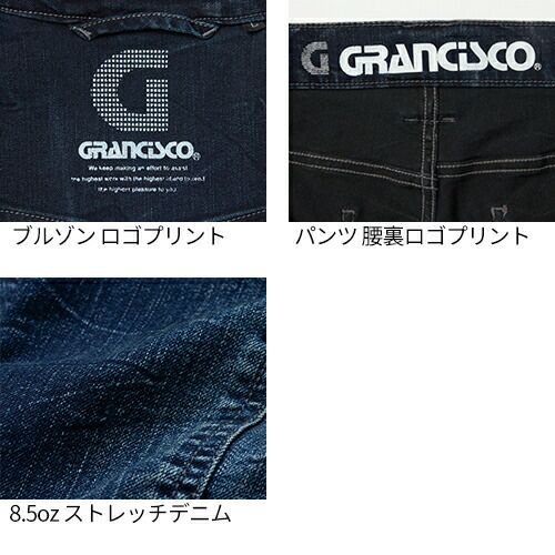 作業服 デニム 上下セット 作業着 ストレッチ 秋冬 デニムパンツ ズボン デニムジャケット ジャンパー メンズ レディース AW セットアップ グランシスコ GRANCISCO タカヤ GC-A700 GC-A712 パンツ 人気 おしゃれ かっこいい